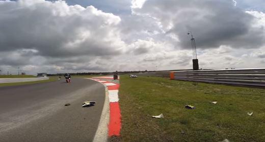 Një aksident i frikshëm për pak i ka marrë jetën një motoçiklisti, i cili po ecte me 225 km/h. Joshua Boyd, goditi me kaskë një pjesë të fortë që kishte rënë nga një motorr tjetër, dhe më pas u rrëzua.