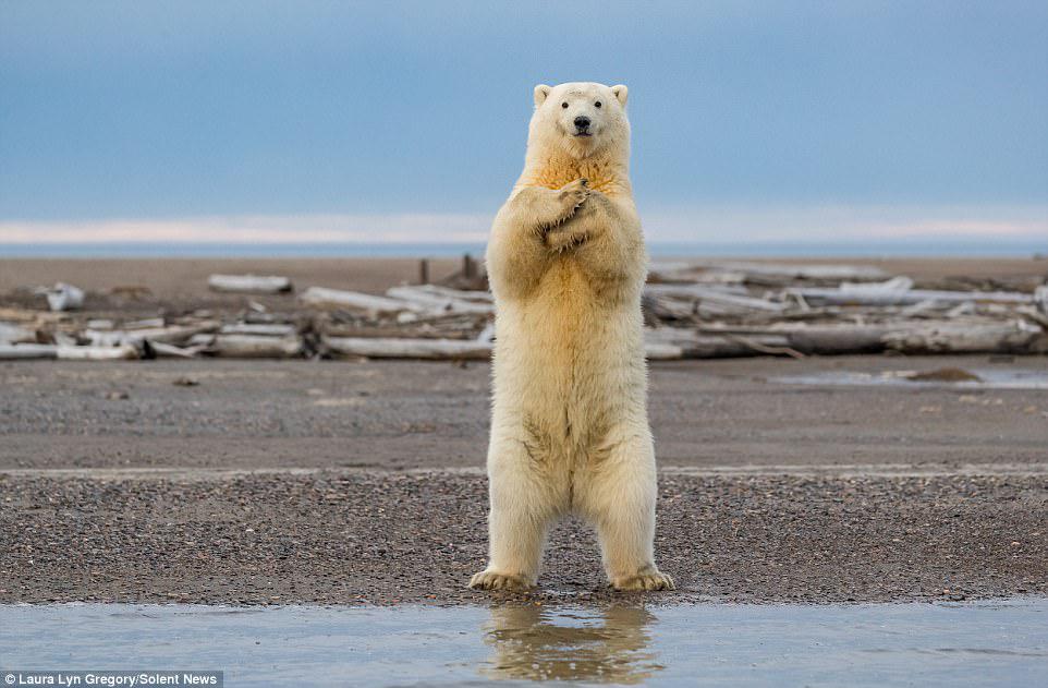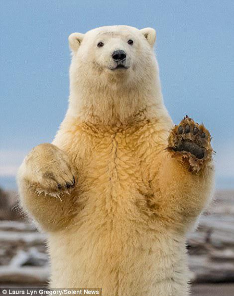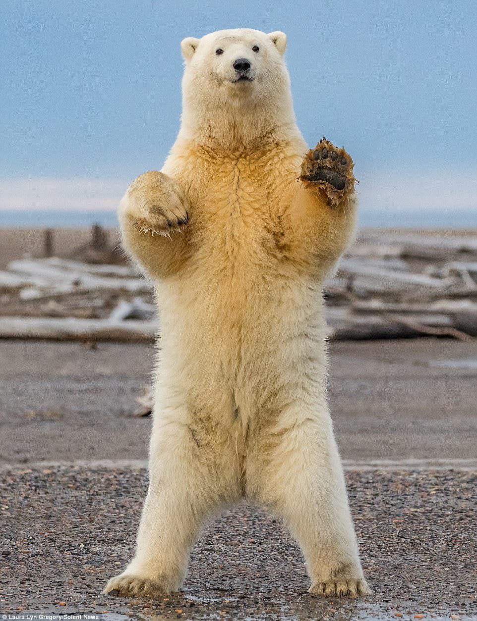 Një këlysh ariu polar në Alaskë është fotografuar duke kërcyer dhe lëvizjet e tij ishin të versionit Macarena. Laura Gregory, 29 vjeçe, arriti që të bëjë këto foto të mrekullueshme të ariut që qëndronte me dy këmbë në Kaktovik të Alaskës.