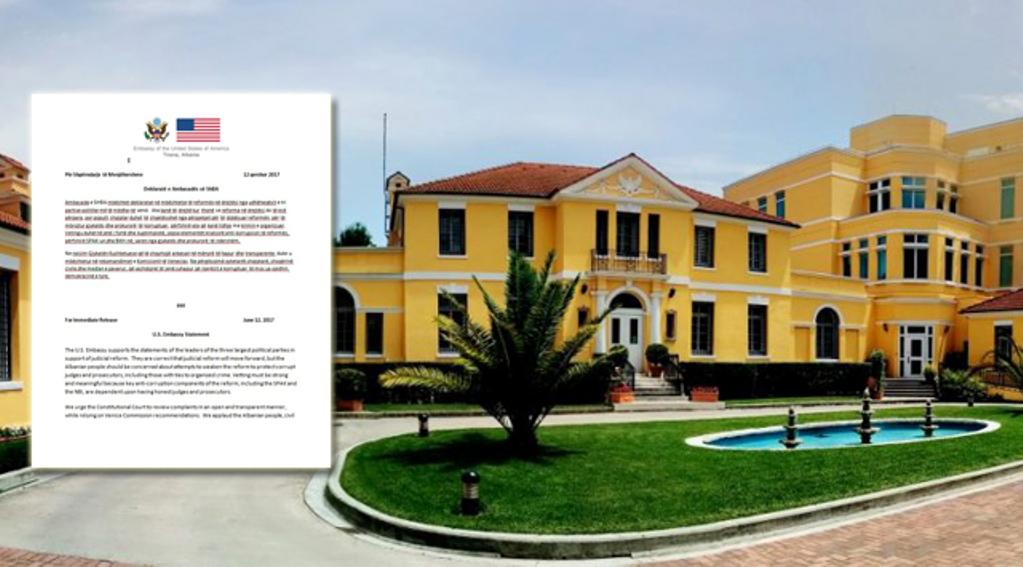 “Ambasada e SHBA mbështet deklaratat në mbështetje të reformës në drejtësi nga udhëheqësit e tri partive politike më të mëdha në vend. Ata kanë të drejtë kur thonë se reforma në drejtësi do të ecë përpara, por populli shqiptar duhet të shqetësohet nga përpjekjet për të dobësuar reformën, për të mbrojtur gjykatës dhe prokurorë të korruptuar, përfshirë ata që kanë lidhje me krimin e organizuar”, thuhet në njoftim.