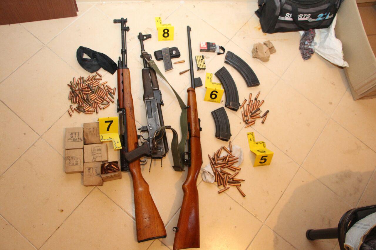 Në cilësinë e provës materiale u sekuestruan një armë zjarri automatik, model 56, kalibër 7.62 mm, me krehër të vendosur në të me 29 copë fishekë, një pushkë model 63, kalibër 7.62 mm, me krehër të vendosur në të me 25 copë fishekë, një pushkë sportive shul, me krëhër të vendosur në të me 3 copë fishekë.