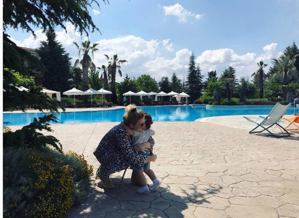 Si diçiturë të fotografisë shkruan, “Jetoj për përqafimin tënd. E shtrenjta ime, mami e lumtur”.