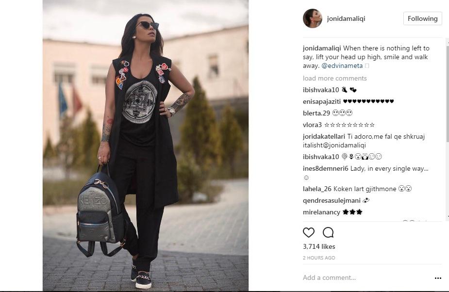 Jonida nuk kishte folur, megjithatë sot, postimin e radhës fashion, e ka shoqëruar me një shënim që duket si komenti i saj i vetëm dhe i mjaftueshëm për këto lajme.