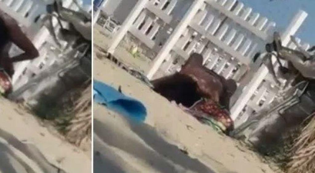 Plazhi ishte publik dhe pranë gjendeshin mjaft familjarë, por me sa duket ky çift nuk po i përmbante dot hormonet dhe filluan “punën” pa e vrarë mendjen aspak.