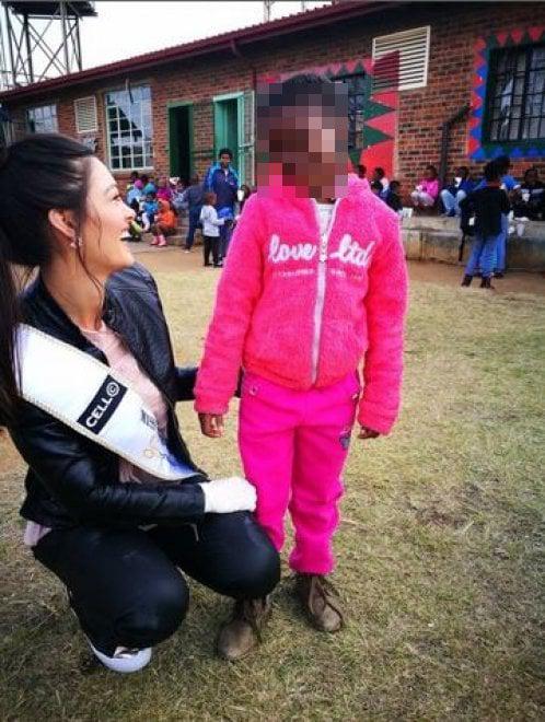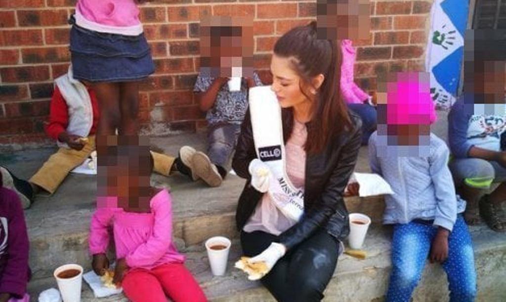 22-vjeçarja që po përgatitet për konkursin e Miss Universit vizitoi disa fëmijë jetimë në Soweto, në periferi të kryeqytetit afrikano-jugor për t’i çuar atyre disa ndihma ushqimore. Ishte vetë Missi që u shërbeu fëmijëve për të ngrënë, por gjithmonë me doreza.