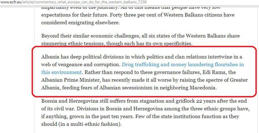 Këshilli Europian për Marrëdhëniet me Jashtë në një shkrim të publikuar në faqen zyrtare të këtij Këshilli, “ECFR.eu”, teksa analizon situatën në Ballkanin Perëndimor dhe me idenë se çfarë Europa mund të bëjë për këto vende, ndalet edhe te Shqipëria.