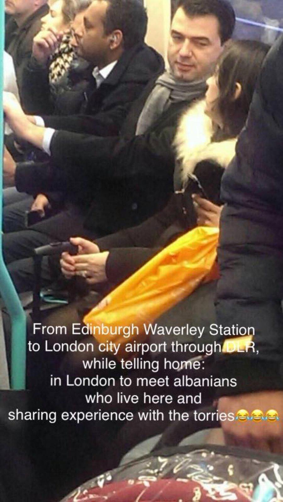 Por gjatë qëndrimit të tij në kryeqytetin anglez, ai është fotografuar teksa udhëton me tren.