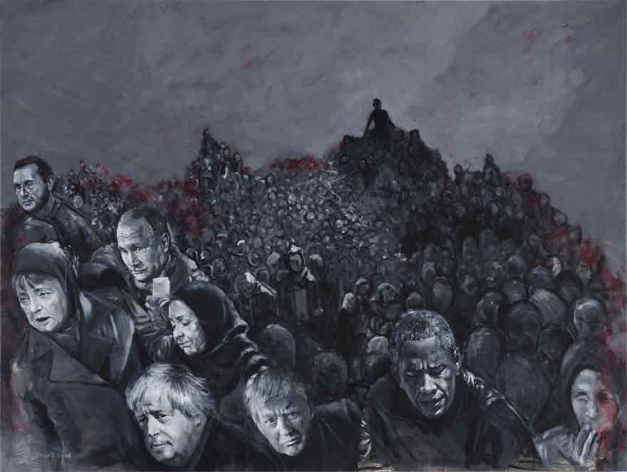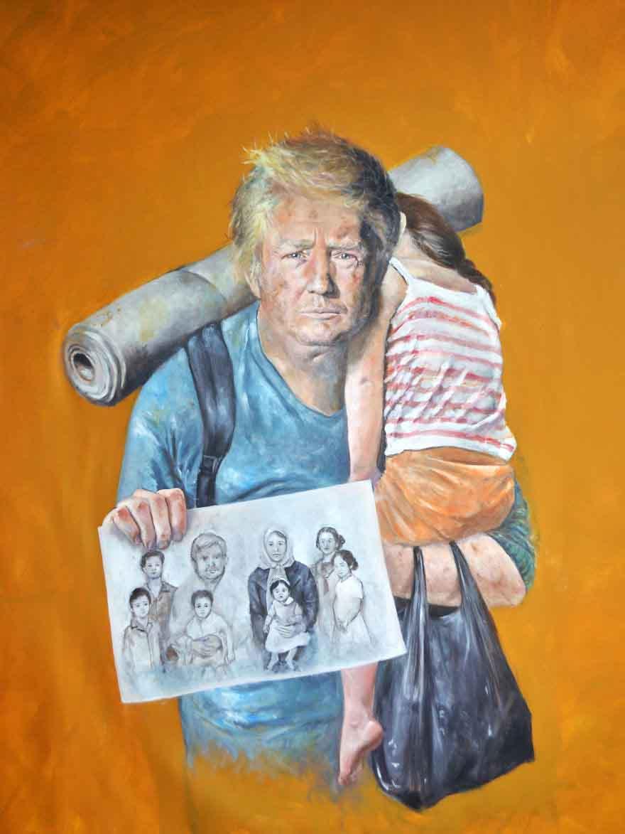 Një artist sirian me emrin Abdalla Al Omari, ka pikturuar disa nga liderat botëror, në pozicionin e refugjatëve. Koleksioni i tij “The Vulnerability Series”, është i përbërë nga një sërë personazhesh të politikës botërore, të vizatuar në pozicione të pazakonta, mes varfërisë dhe mjerimit.