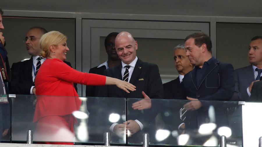 Ajo ishte veshur me uniformën e kombëtares dhe ishte ulur pranë presidentit të FIFA-s Gianni Infantino dhe kryeministrit rus Dimitri Medvedev.