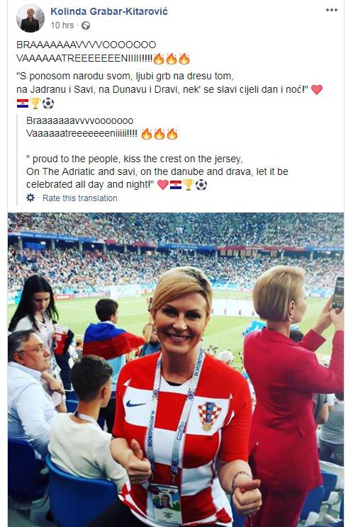 Në shkallët e stadiumit kombëtarja kroate kishte dhe një tifoze speciale, presidenten Kolinda Grabar Kitaroviç.