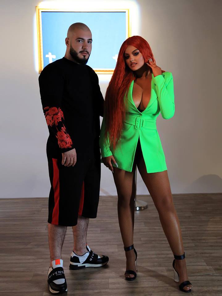 Në të ajo shihet me flokë të kuqe dhe e veshur në mënyrë ekstravagante, ku zbulon dukshëm gjinjtë e saj.