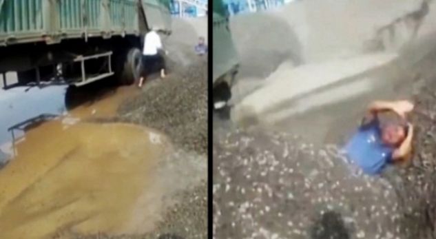 Pasi polici inspektoi kamionin e mbingarkuar me zhavorr në Haikou, dhe u mbulua me ngarkesën nga shoferi i këtij kamioni, kolegu i tij vendosi që gjithë këtë ngjarje ta regjistrojë me telefon. /k.k/noa.al/