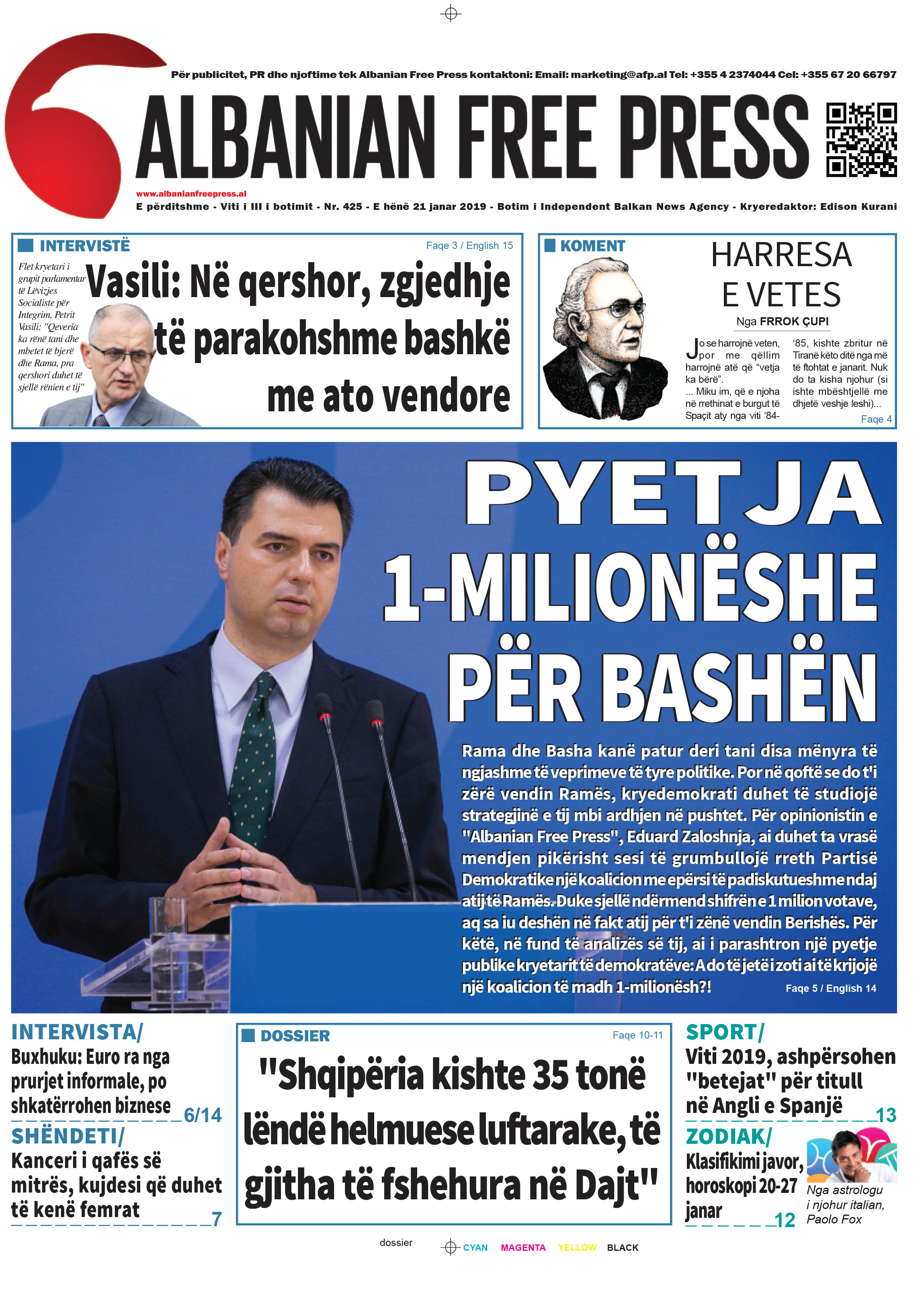 Të nderuar lexues, kjo është një pasqyrë e faqeve të para të disa prej gazetave kryesore, për ditën e hënë 21 janar 2019.
