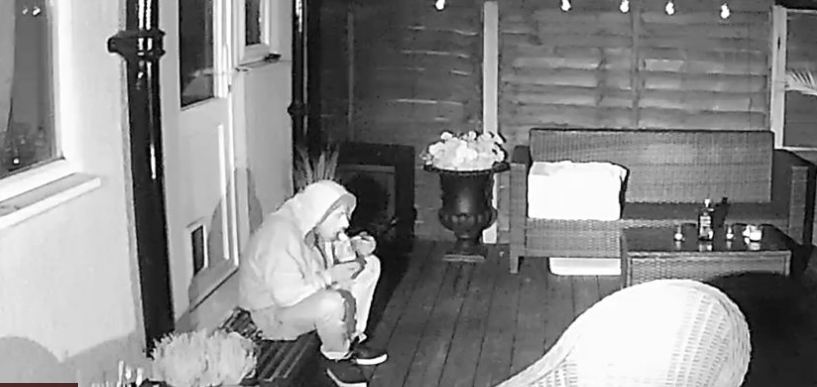 Pasi kërkoi një derë të hapur për t’u futur brenda shtëpisë, ai ulet në shkallë dhe konsumon akullore.