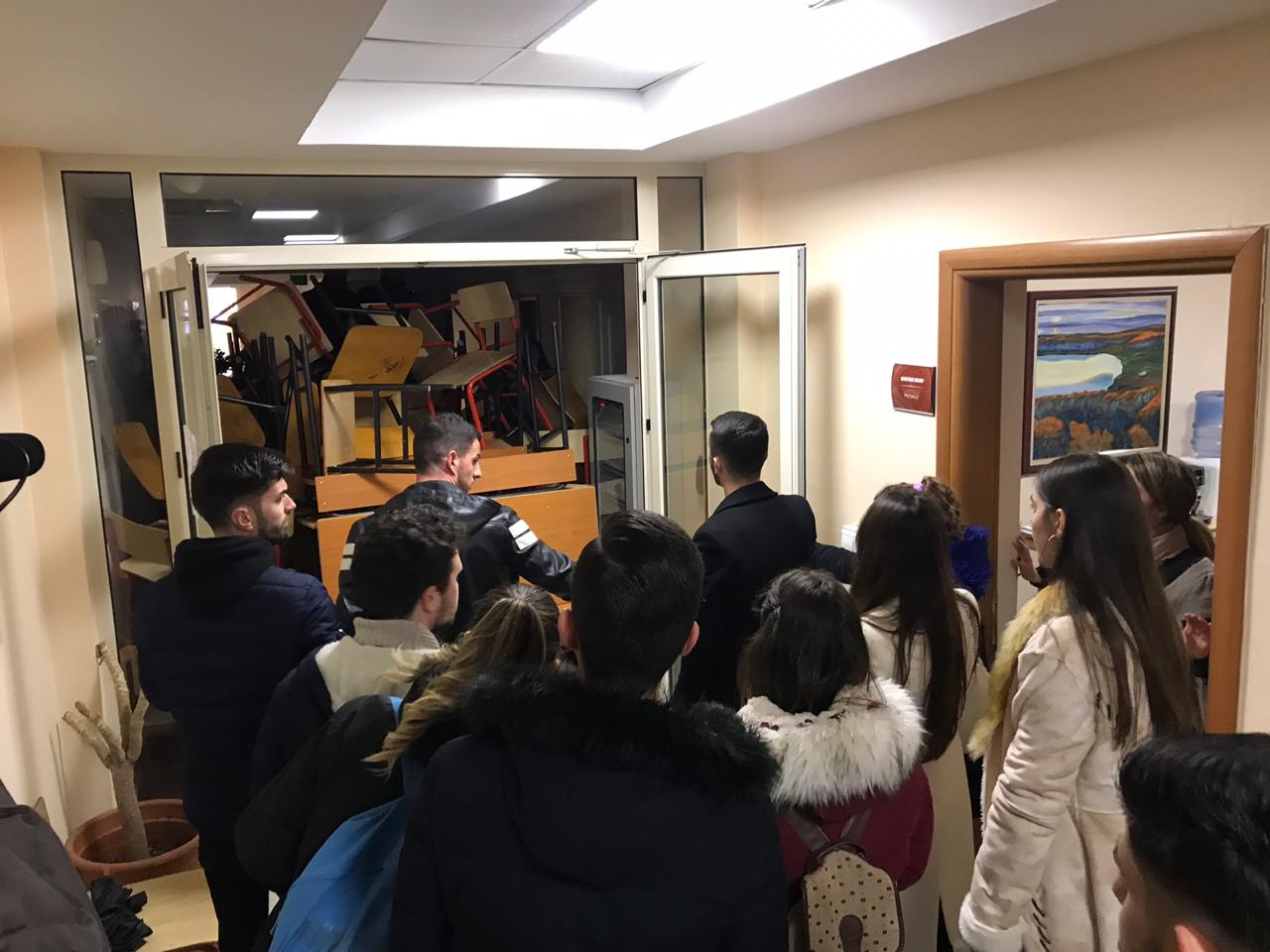 Një pjesë e studentëve të Juridikut vijojnë ngujimin brenda ambienteve të fakultetit, ndërsa në pjesën e jashtme, një grup tjetër kërkojnë rinisjen e mësimit.