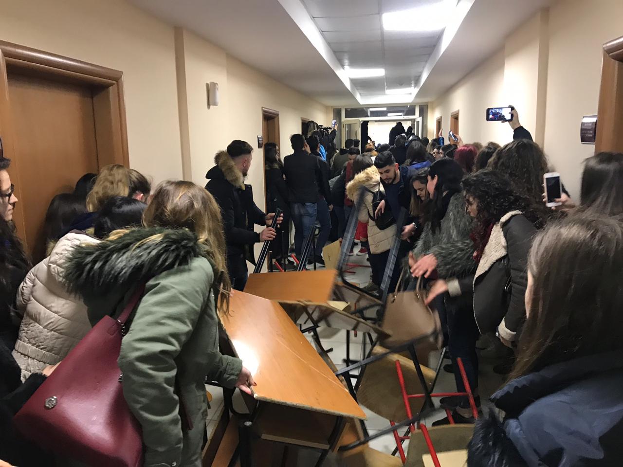 Vijon protesta e studentëve të fakultetit të Drejtësisë, ku të rinjtë janë ndarë në dy grupe.