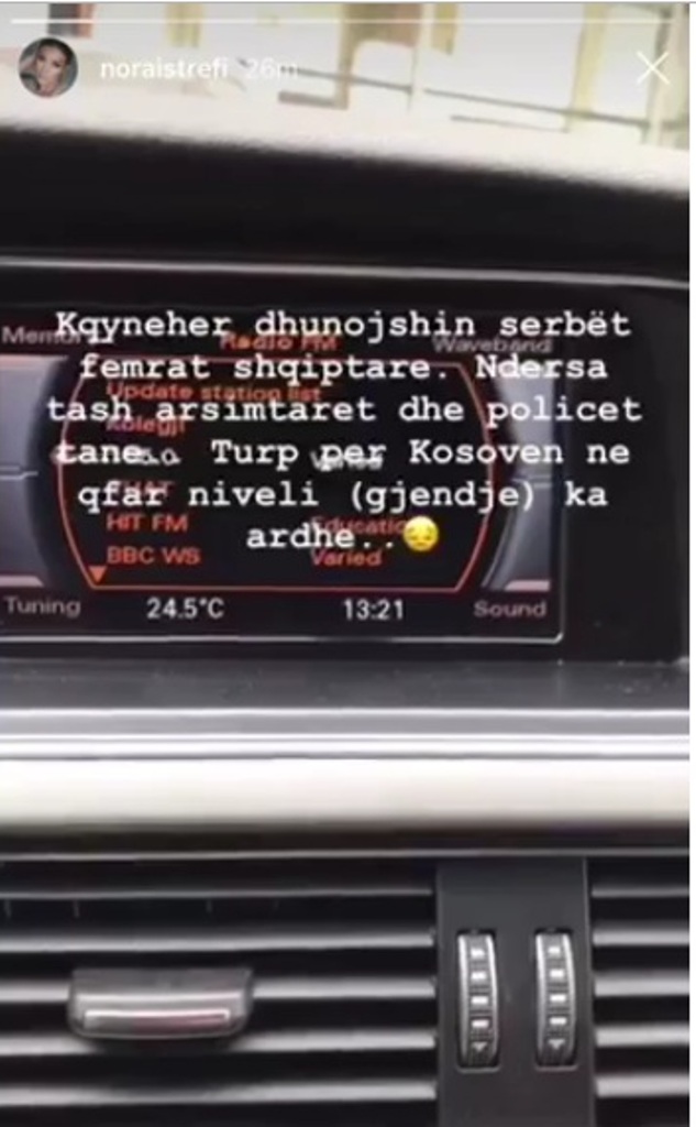 Ndër personat që kanë reaguar pas këtij akti të tmerrshëm ka qenë edhe këngëtarja e njohur Nora Istrefi, e cila teksa ka qenë duke dëgjuar radion që fliste për këtë rast, ka bërë një postim në Instagram.