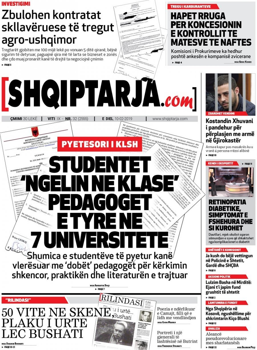 Të nderuar lexues, kjo është një pasqyrë e faqeve të para të disa prej gazetave kryesore, për ditën e diel 10 shkurt 2019.