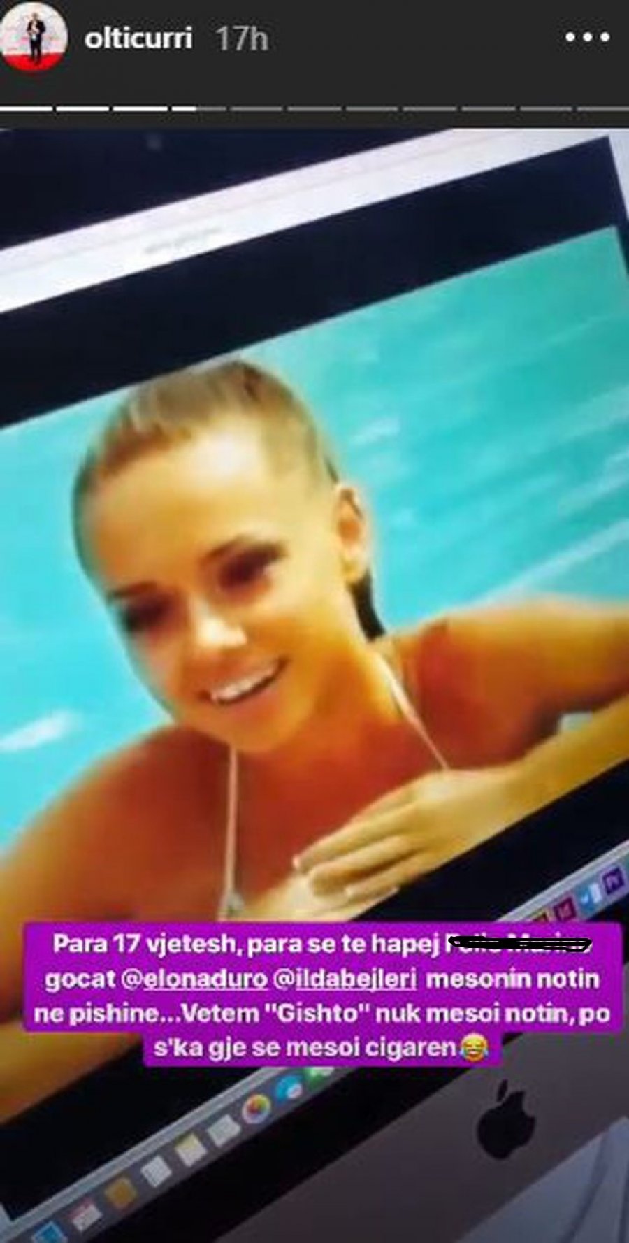 ’Para 17 vitesh gocat Ilda Bejleri dhe Elona Duro mësonin notin në pishinë….vetëm Gishto nuk e mësoi, por ska gjë mësoi cigaren’ shkruan Olti me humor ndërsa shihej Ilda në pishinë dhe pothuajse nuk njihet.