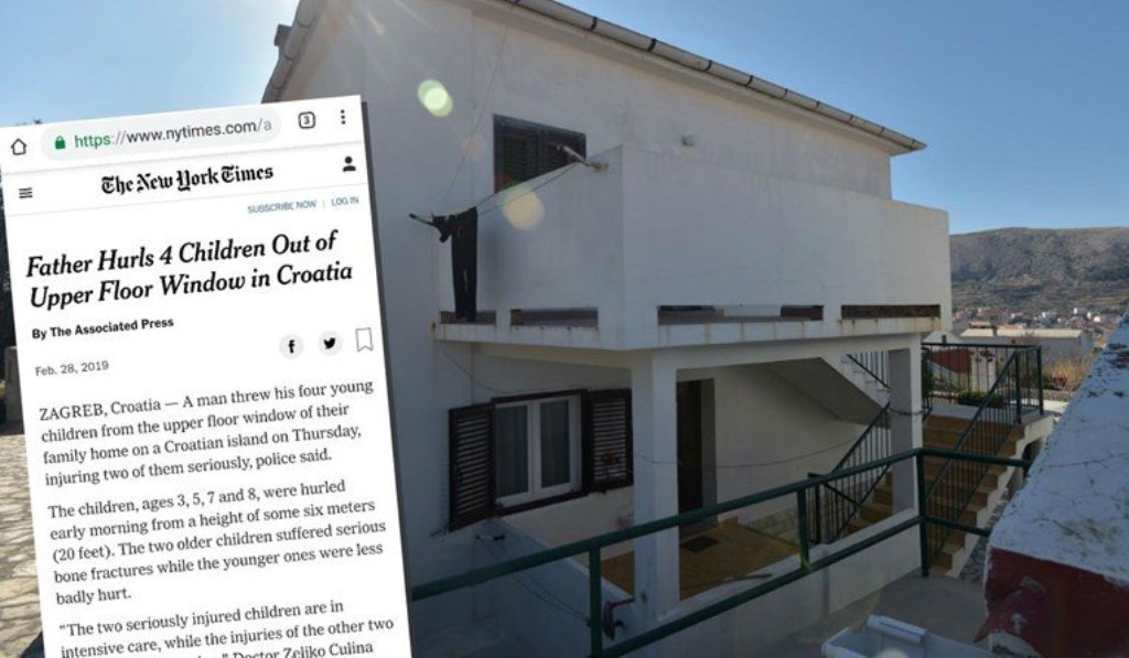 Mjekët e Spitalit të Përgjithshëm të Zarës në Kroaci njoftuan mbi gjendjen e 4 fëmijëve të cilët babai i tyre, sot rreth orës 7 të mëngjesit i hodhi nga ballkoni i shtëpisë së tyre, nga një lartësi prej 6 metrash.