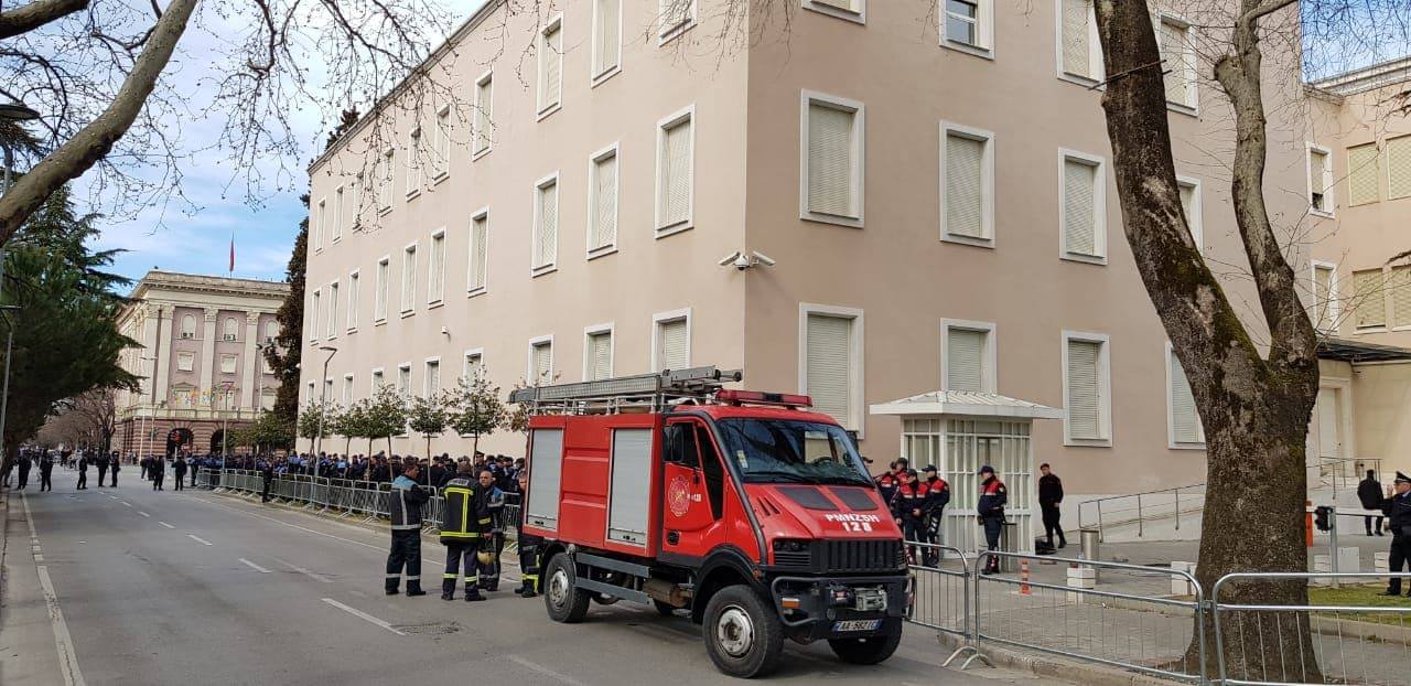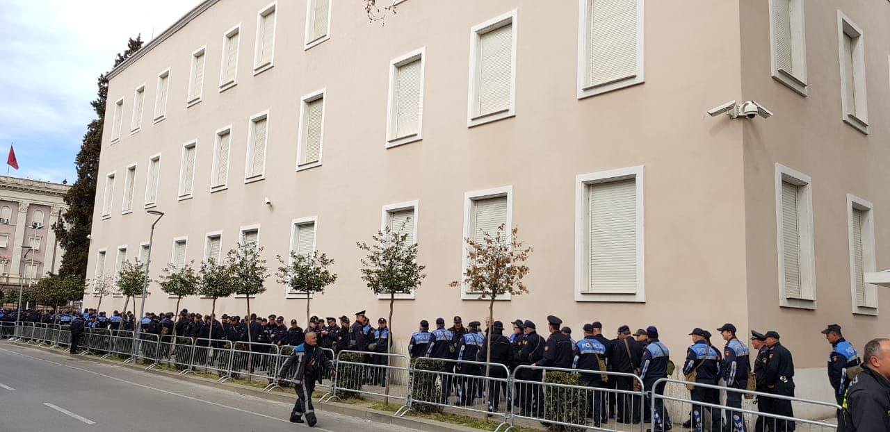Kështu për shkak të protestës së 16 shkurtit para Kryeministrisë kur pati gaz lotsjellës dhe akte dhune dhe dëmtime në ambientet e Kryeministrisë, masat e marra janë më të përforcuara.