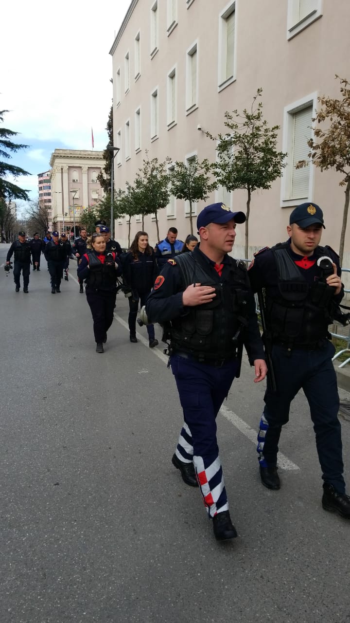 Vihet re se efektivët e policisë janë të pajisur edhe me maska kundragaz, ku me gjasë mund të përdoret sërish gaz lotsjellës. /a.y/noa.al