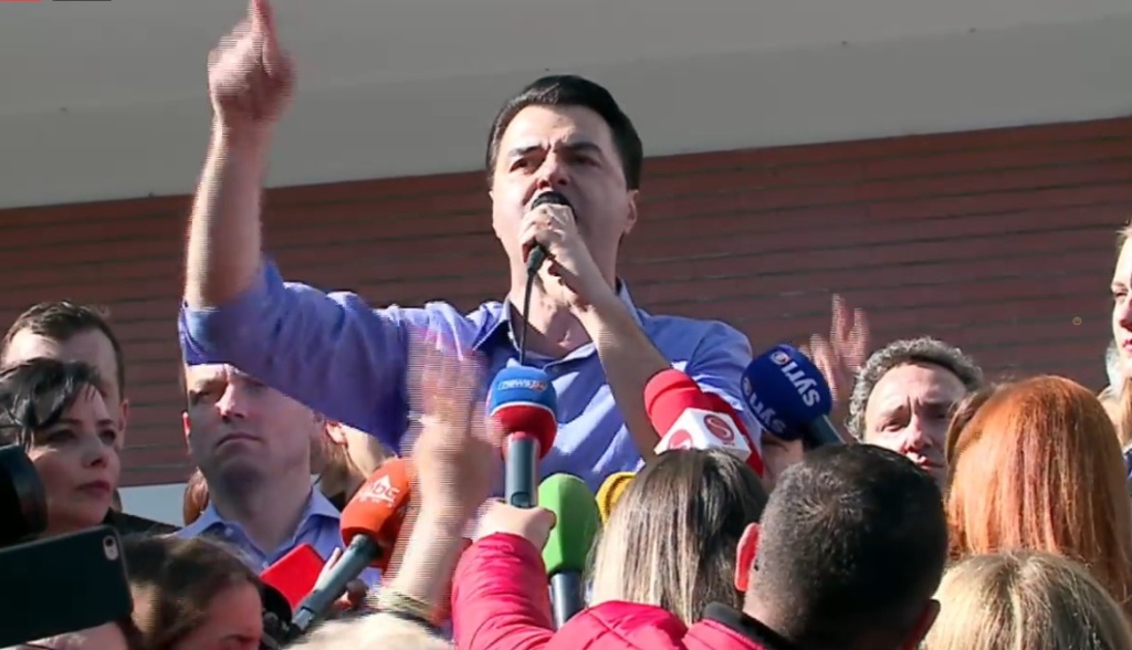 Pas një proteste të zgjatur për afro katër orë e gjysmë, kryedemokrati Lulzim Basha doli në një fjalë para mbështetësve nga selia e Partisë Demokratike.