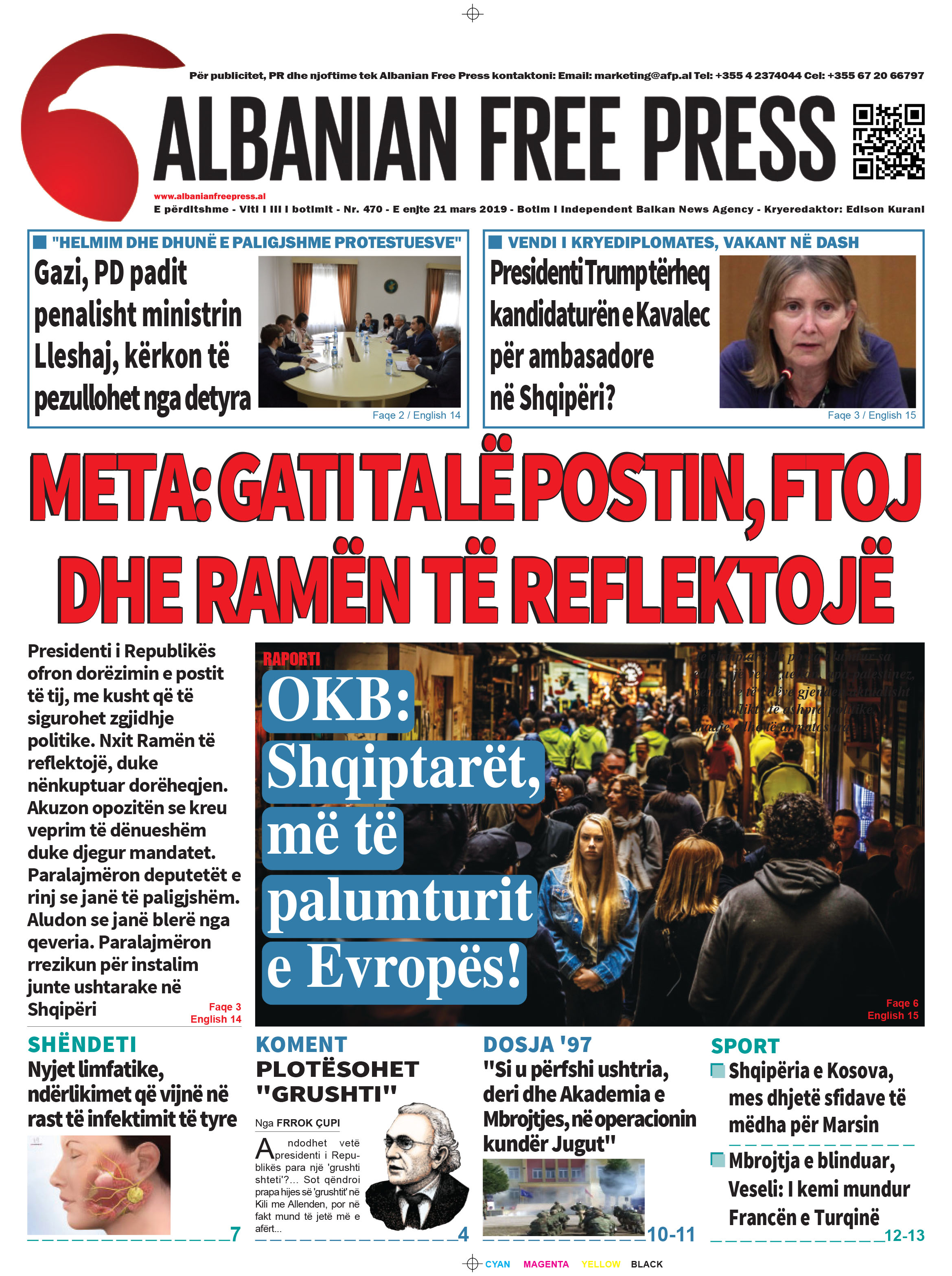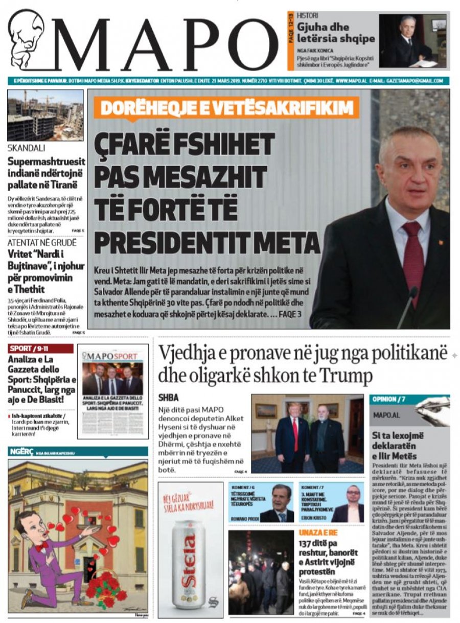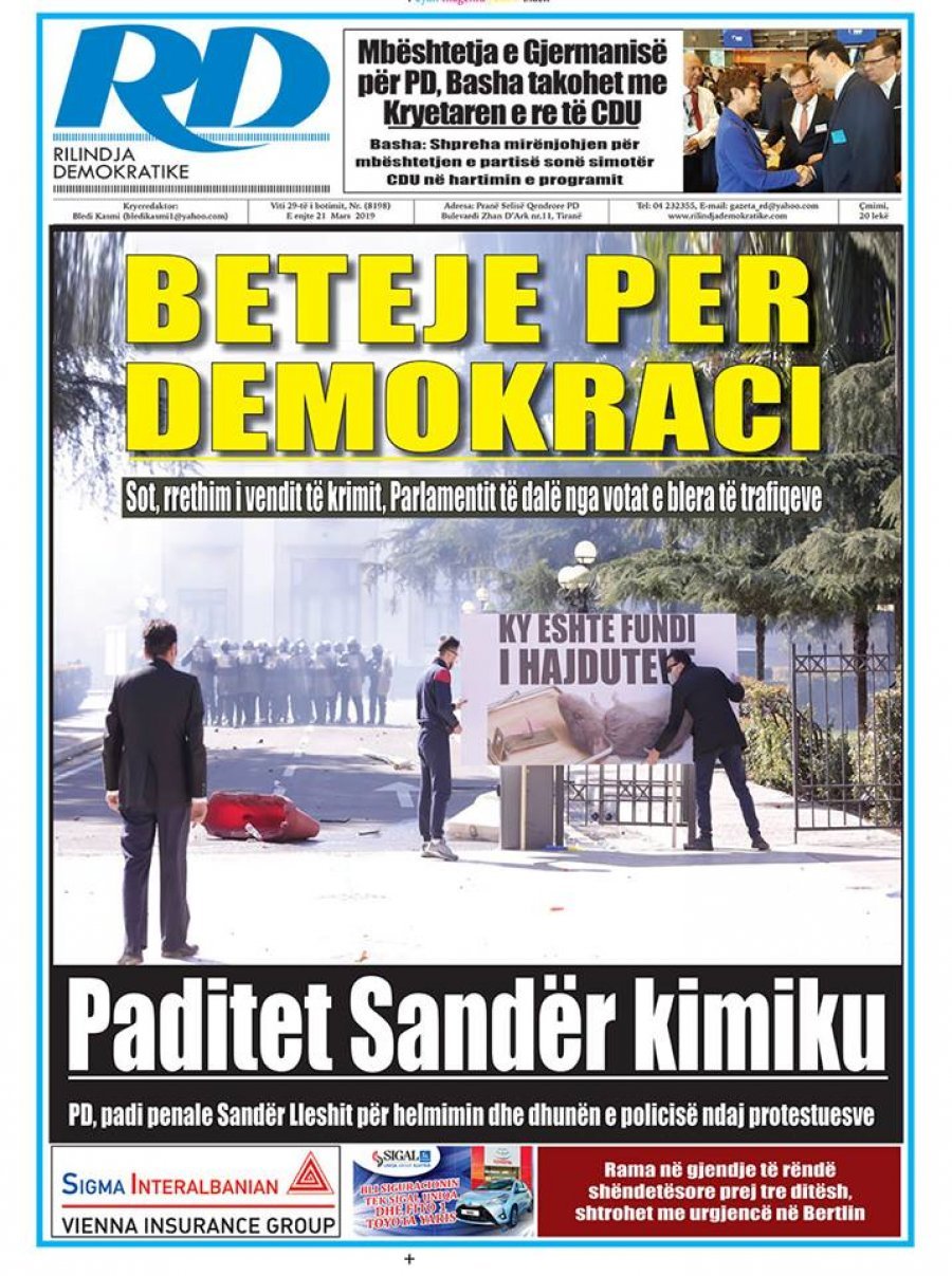 Të nderuar lexues, kjo është një pasqyrë e faqeve të para të disa prej gazetave kryesore, për ditën e enjte 21 mars 2019.