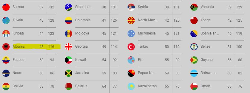 Ndërkohë, në indeksin e publikuar në muajin janar (i cili rishikohet çdo tre muaj), Shqipëria listohej e 50-ta, me lëvizjen e qytetarëve pa viza drejt 115 vendeve.