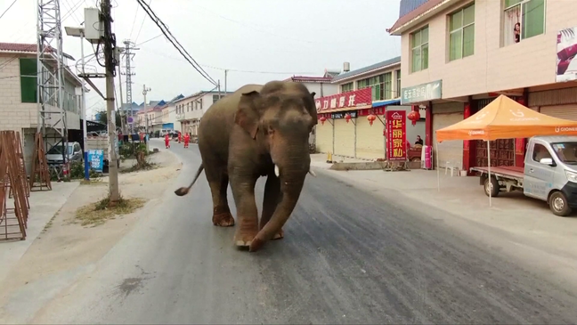 Po ecte në shoqërinë e elefantëve të tjerë. Më pas, ndoshta i mërzitur, u shkëput prej tyre dhe u drejtua drejt një zone urbane në qytetin kinez të Meng’a, duke krijuar panik.
