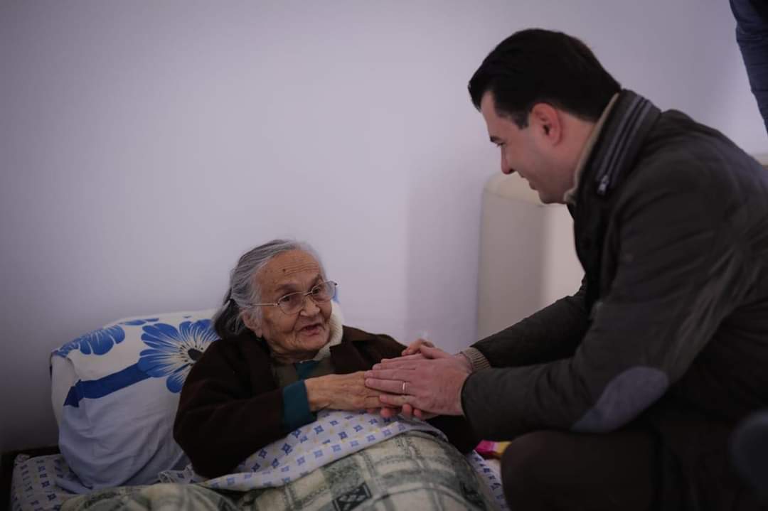 Basha bisedoi me një nënë të moshuar, e cila nuk ngurroi të përçonte një mesazh te brezat e rinj, ndërsa kërkoi prej tyre të punojnë fort për të ndërtuar Shqipërinë dhe mos të largohen nga vendi.