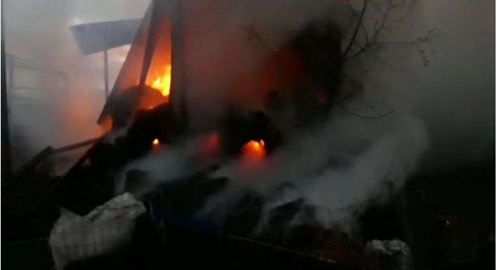 Për pasojë është shkrumbuar edhe një furgon me karroceri dhe rreth 1000 dengje bari.