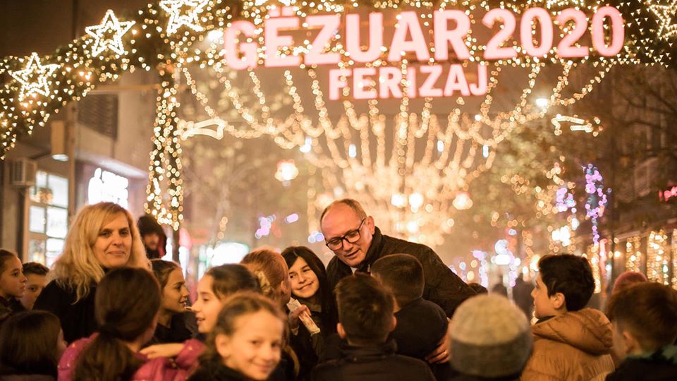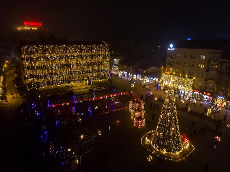 Kryetari i Komunës së Ferizajt, Agim Aliu, simbolikisht, këtë pasdite ndezi dritat e Pemës së Krishtlindjeve dhe gjithë dekoreve ndriçuese në sheshin qendror të qytetit.
