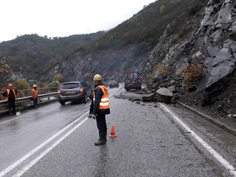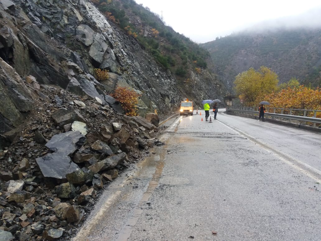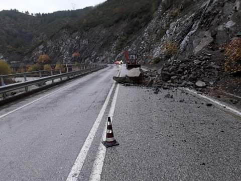 Më konkretisht përgjatë segmentit rrugor Elbasan-Qafë Thanë, te Kthesa e Murrashit ka pasur rënie materiali në trupin e rrugës.