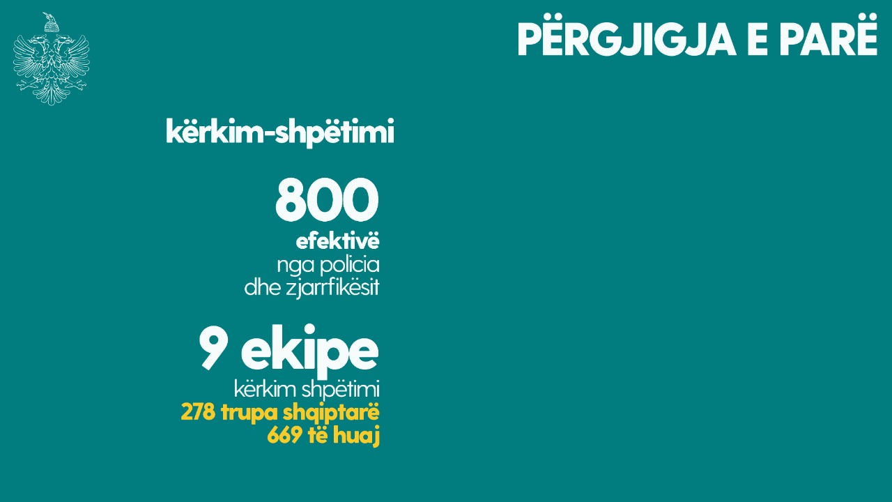 Operacionet e kërkim-shpëtimit u kryen nga 9 ekipe, të përbërë nga 278 trupa shqiptarë dhe 669 të huaj. Thirrjes së parë për ndihmë iu përgjigjën: