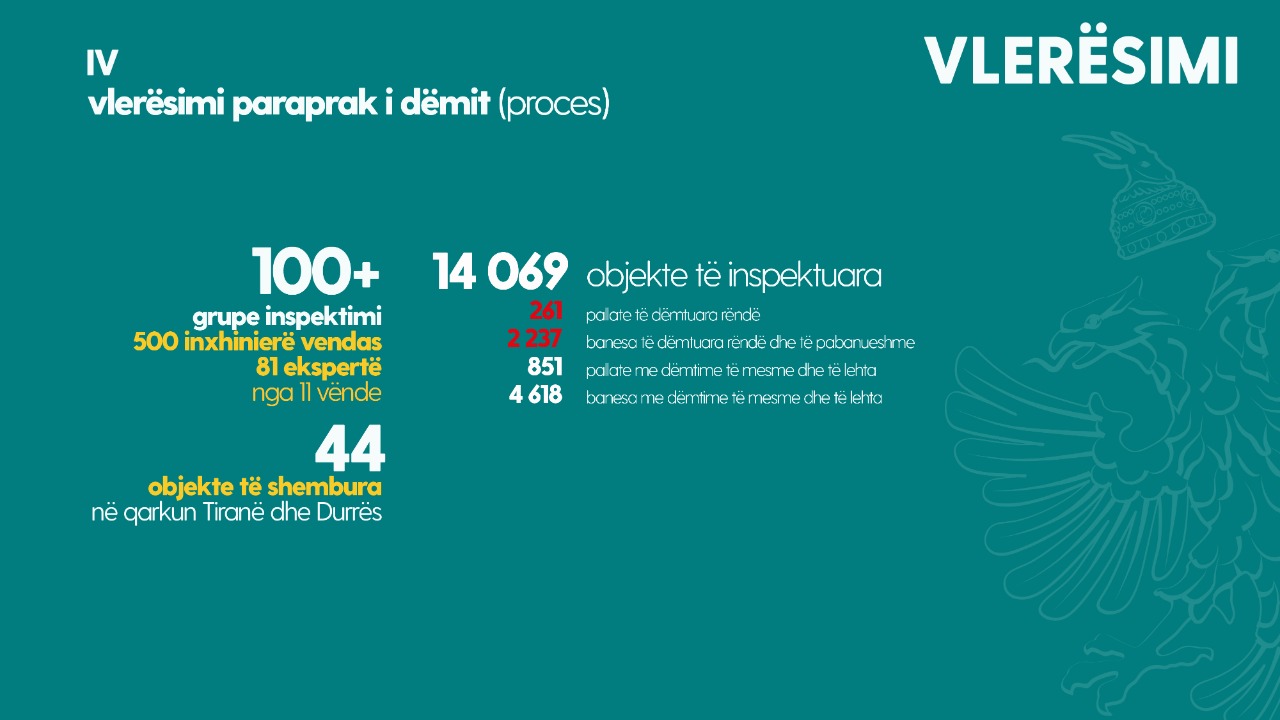 Ky proces dinamik vijon. Deri më sot, në të gjitha zonat e prekura nga tërmeti janë inspektuar 14 069 objekte, nga të cilat: