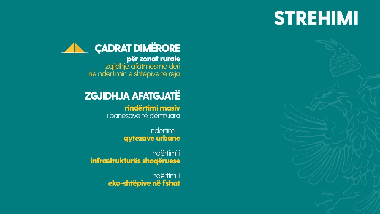 Ka fillar përgatitja e planeve konkrete për zgjidhjen afatgjatë të problemeve që shaktoi tërmeti i dy javëve më parë. Këto zgjidhje përfshijnë angazhimin tonë për të bërë të mundur:
