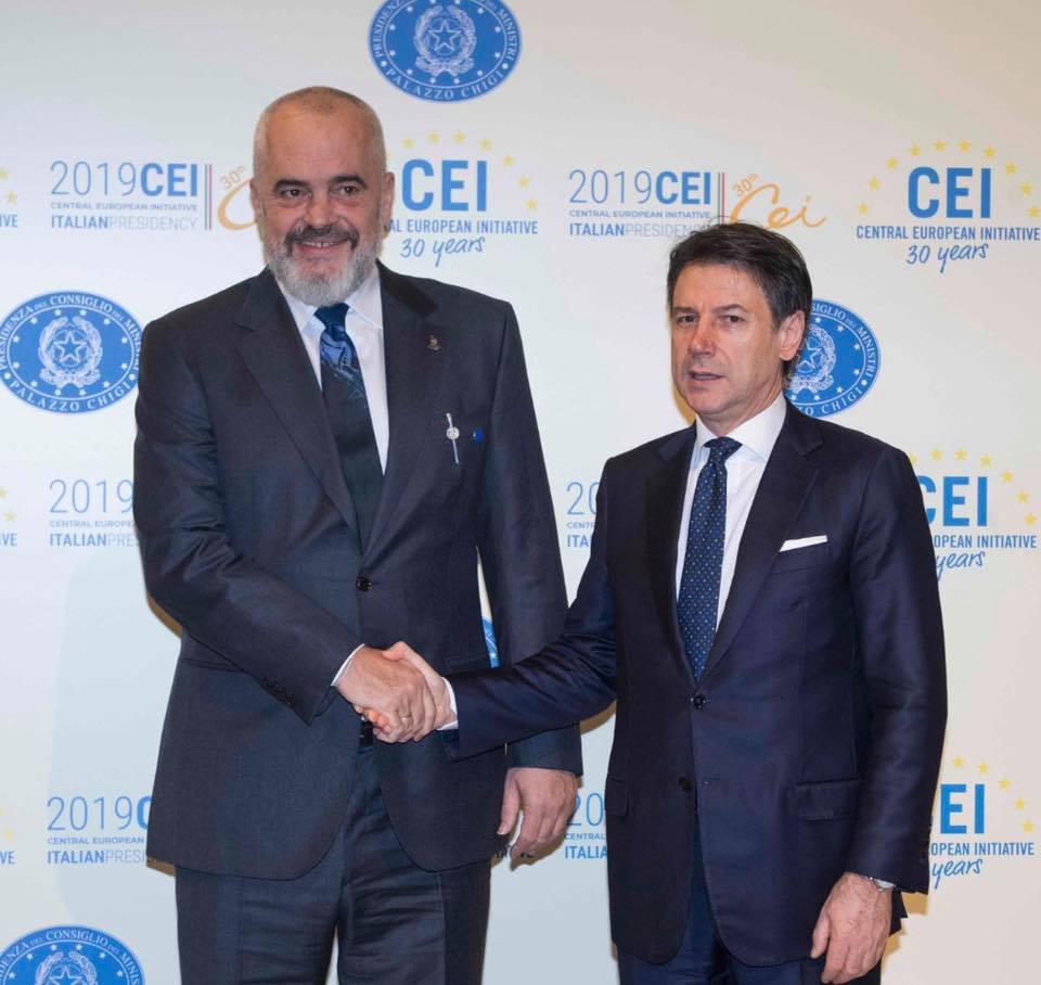 Kryeministri Edi Rama është takuar me homologun italian Giuseppe Conte, në kuadër të vizitës së tij në Romë, ku po merr pjesë në Samitin e Europës qendrore.