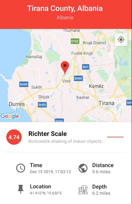 Një tjetër tërmet i fortë ka tronditur Tiranën. Lëkundja e fortë e tërmetit është regjistruar rreth orës 17:03 minuta të pasdites së sotme.