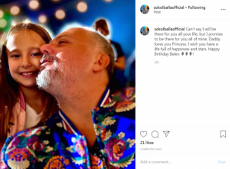 “Nuk mund të them që do jem aty për ty gjithë jetën tënde, por të premtoj që do jem pranë teje për gjithë jetën tënde. Babi të do princeshë. Uroj të kesh një jetë plot me lumturi dhe shkëlqim. Gëzuar ditëlindjen Belen”, shkruan ai në foton ku shfaqet me vogëlushen.