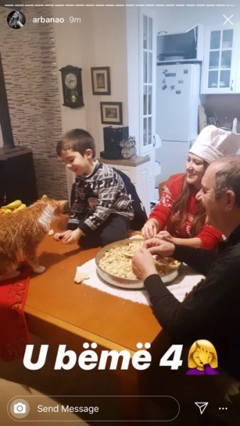 Së fundmi Arbana ka ndarë disa video në llogarinë e saj në Instagram ku duket se është duke përgatitur kulaçin e Vitit të Ri së bashku me babin dhe djalin e saj, Joni.