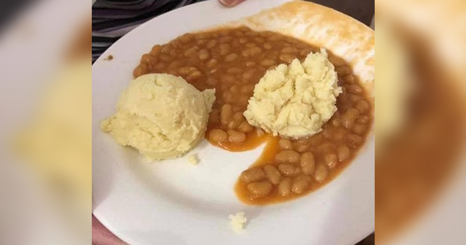 Aty dukeshin dy pjesë pure patatesh pranë fasuleve.