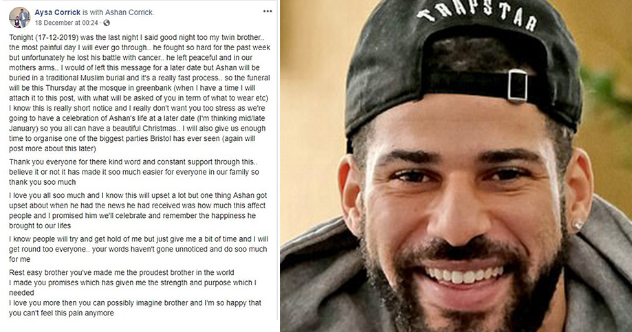 Vëllai i tij binjak, Aysa, zbuloi të mërkurën në Facebook se Ashan kishte ndërruar jetë.