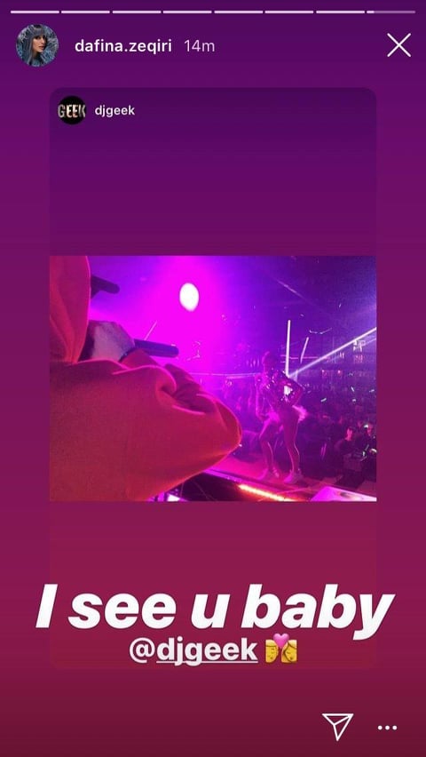 Me anë të një Instastory, ajo ka treguar se e shoqëron kudo nëpër koncerte me Dj Geek.