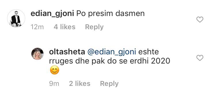Një komentuese, perzonazh i ndjekur në profilin e saj në Instagram dhe një modele në profesion thotë se dasma e çiftit është rrrugës dhe se edhe pak do të vijë 2020.