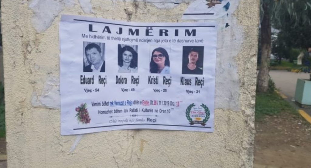 Nga tërmeti tragjik gjetën vdekjen nën rrënoja Eduard Reçi, 54 vjeç, Dolora Reçi, 49 vjeç, vajza Kristi Reçi, 25 vjeç, e cila u tha se ishte e dashura e Greg Ramës dhe vëllai i saj Klaus Reçi, 21 vjeç.
