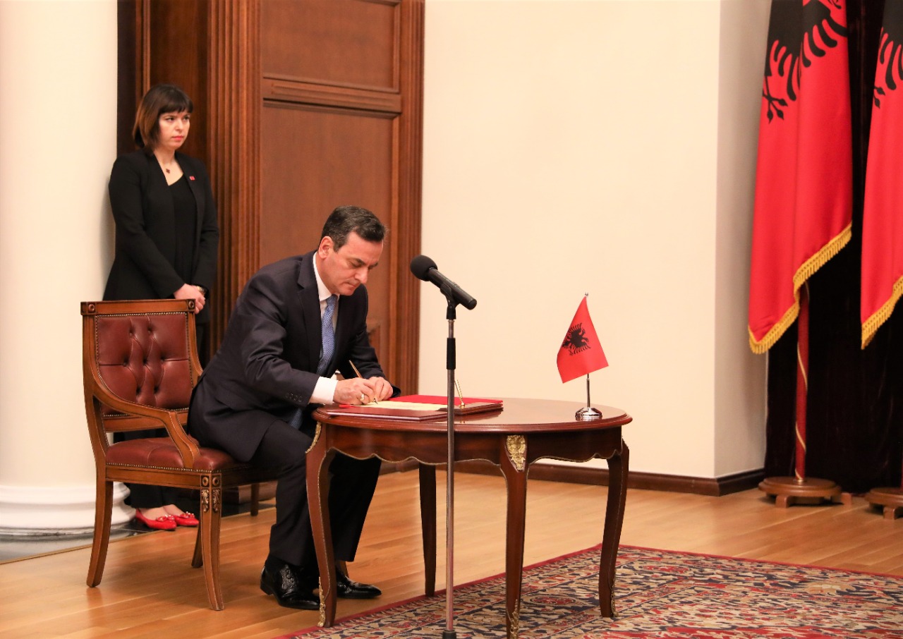 Pas ekzekutimit të himnit kombëtar dhe leximit të dekreteve të Presidentit Meta, gjyqtarët e lartë, duke vendosur dorën mbi Kushtetutën e Republikës së Shqipërisë u betuan para Kreut të Shtetit se: