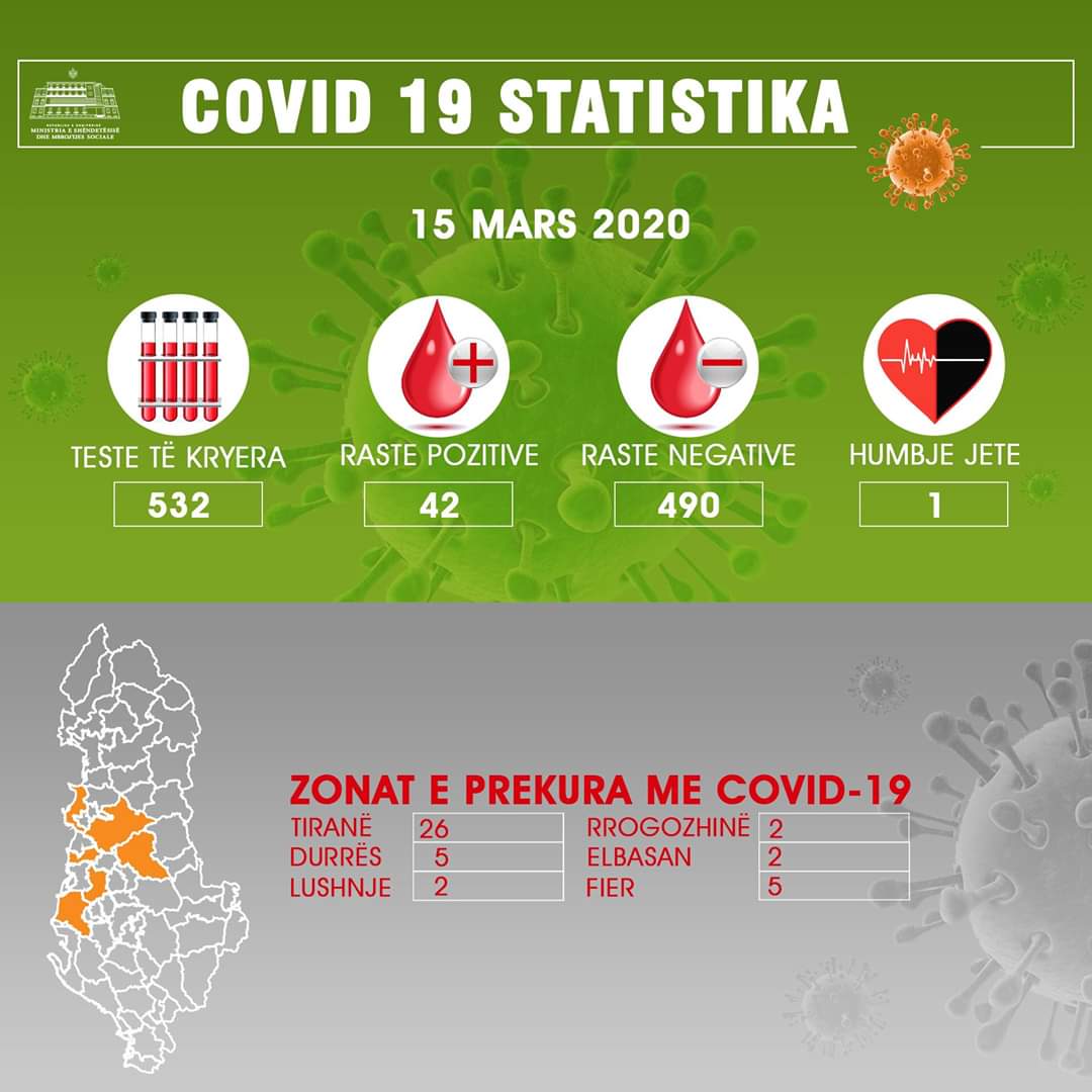 Në vijim të punës së kujdesshme dhe profesioniste të bërë nga ISHP dhe njësitë e kujdesit vendor, për identifikimin dhe gjurmimin e rasteve, në 24 orët e fundit janë testuar 31 persona të dyshuar, qytetarë dhe personel shëndetësor, prej të cilëve janë konfirmuar 9 raste të reja me COVID-19. Deri në këto momente janë testuar 563 raste të dyshuara dhe prej tyre janë të konfirmuar pozitivë me COVID-19, 51 raste: Nga rastet e konfirmuara pozitivë: Tiranë 34 raste Durrës 5 raste (njëri prej të cilëve ka ndërruar jetë) Lushnje 2 rast Elbasan 2 raste Fier 6 raste Rrogozhinë 2 raste Prej tyre: 20 janë të shtruar në spitalin Infektiv (nga Tirana, Durrësi, Fieri, Lushja dhe Rrogozhina). Prej tyre janë në terapi intensive tre qytetarë, njëri prej të cilëve në respiracion të drejtuar. Ndërsa pjesa tjetër e të shtruarve në pavion janë në gjendje të stabilizuar deri në këto momente.