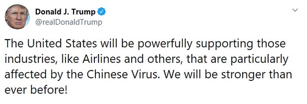 Presidenti Trump bëri një postim në Twitter dje ku thoshte: ‘Shtetet e Bashkuara do të mbështesin plot fuqi këto industri si linjat ajrore dhe të tjera, të cilat janë prekur nga virusi kinez. Ne do të jemi më të fortë se kurrë më parë!’