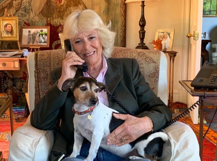 Camilla mban edhe qenin e saj Beth në prehër teksa vijon me telefonatën, të cilën e konsideroi si kënaqësi të madhe./a.m/noa.al