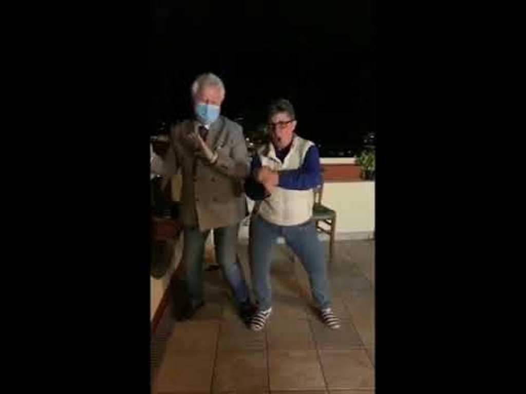 Në kushtet e izolimit prej koronavirusit, u ngjit për të festuar në tarracën, por u filmua teksa këndonte dhe kërcente.
